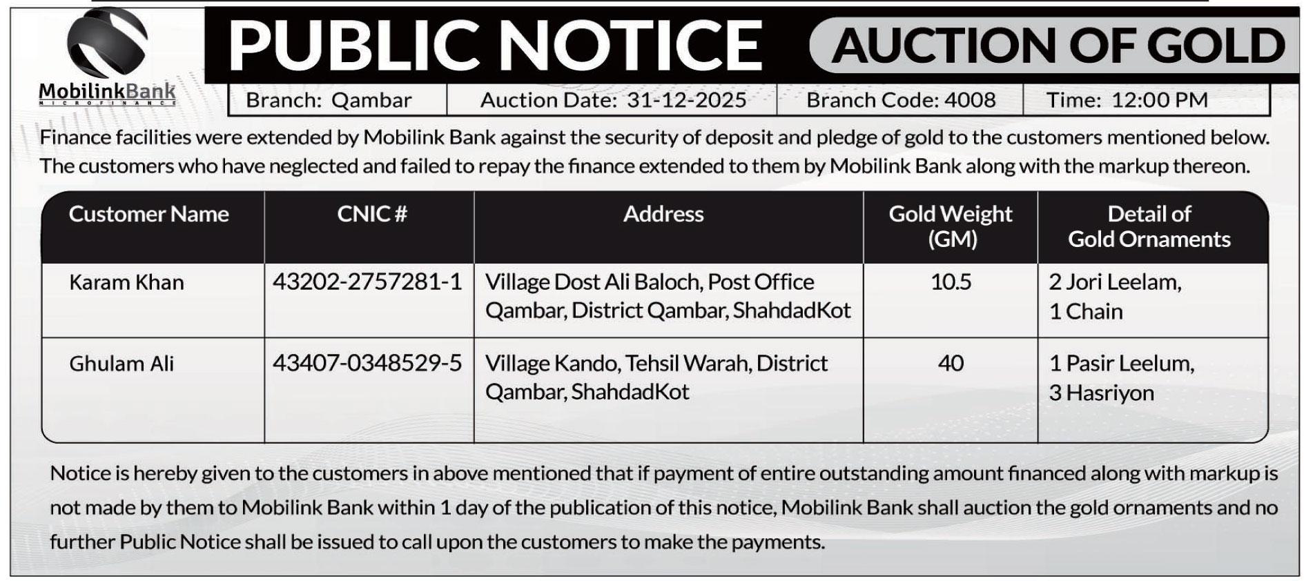 Toll Tax, Scrap Material, Baldia, Auction
