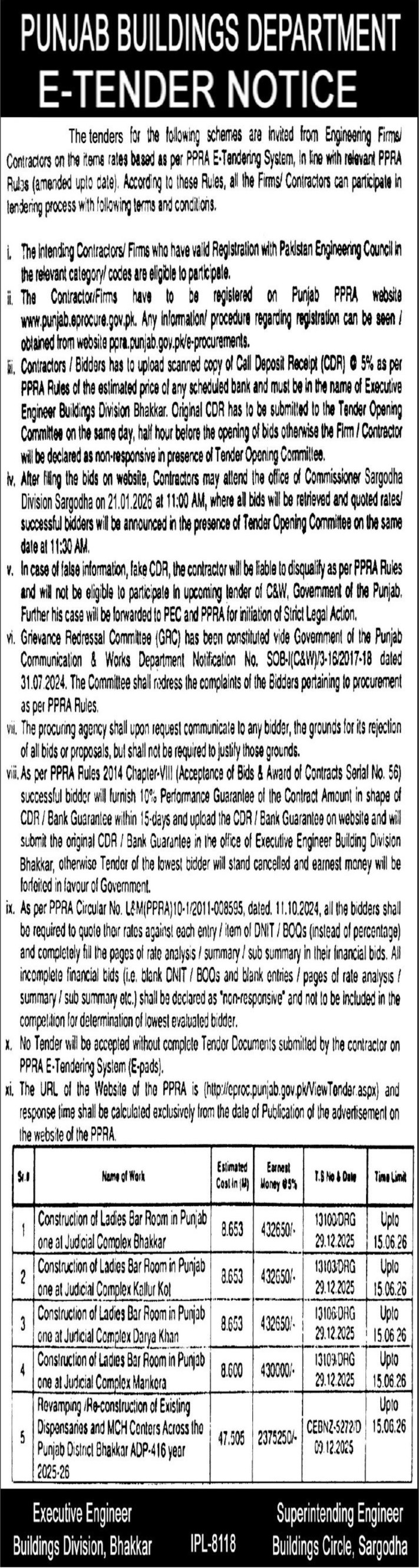 Water Supply Scheme / Drains / Sewerage, Roads, Repair & Maintenance, Engineering, Construction, Buildings