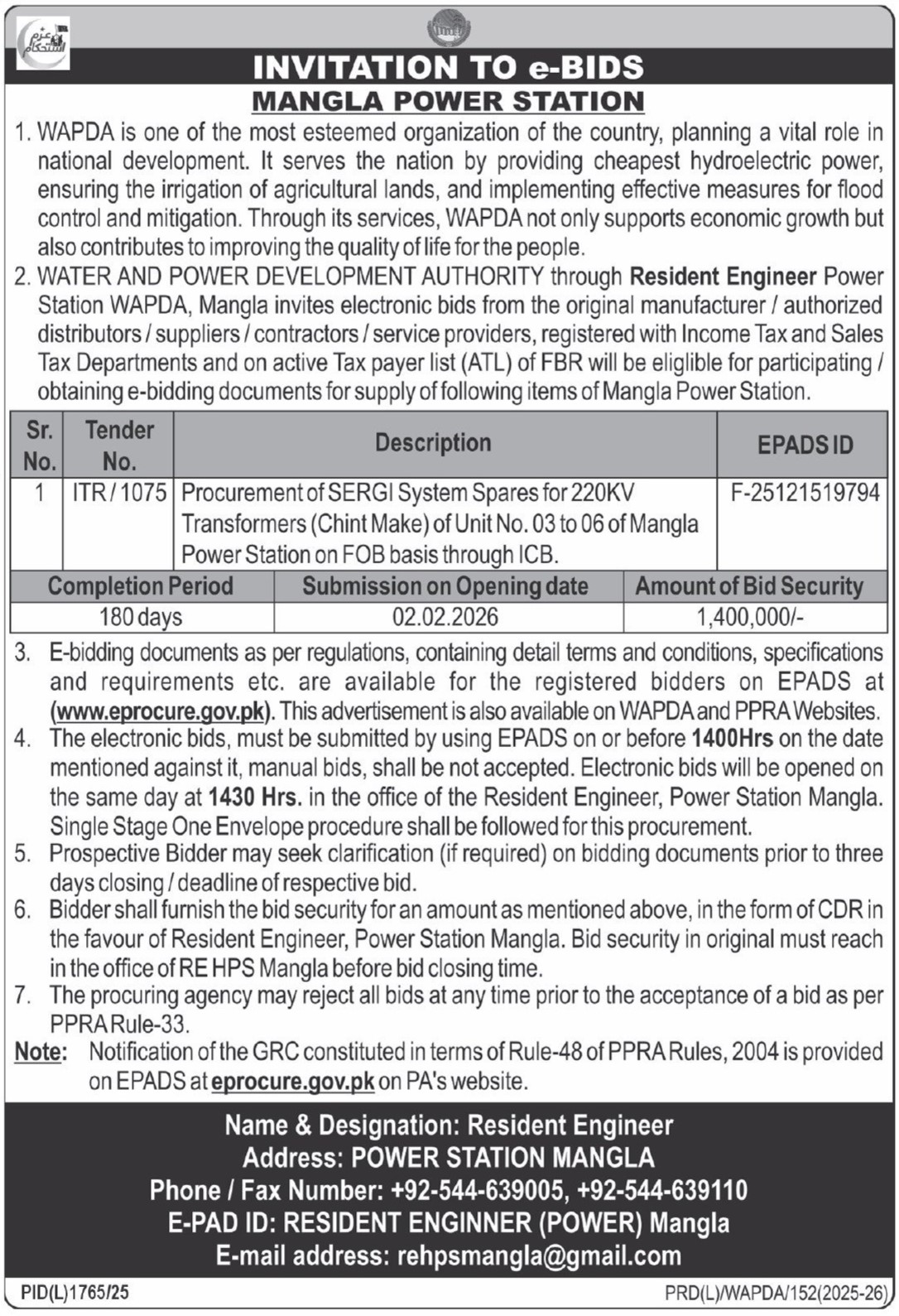 WAPDA, Mechanical, Machinery, General Order Supply, Energy, Electronics, Electrical