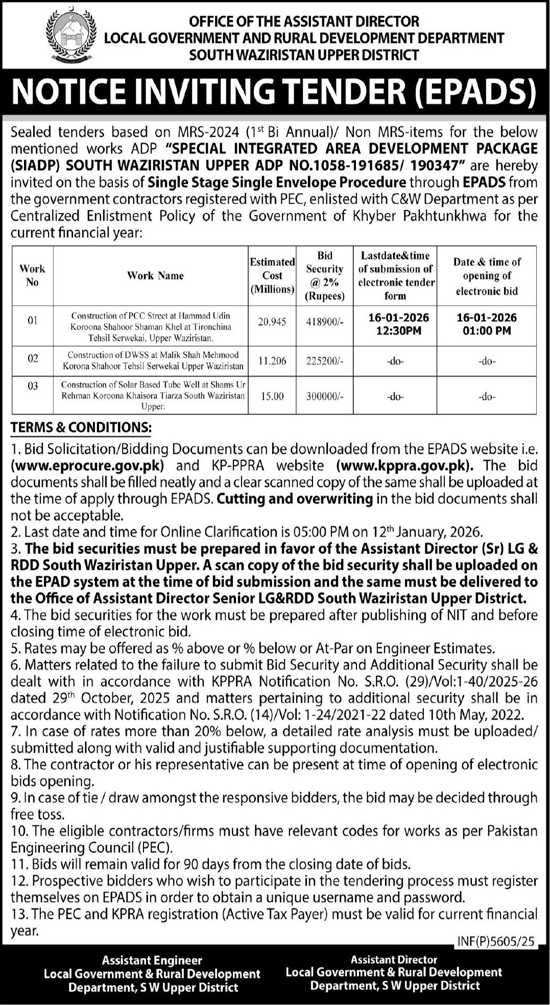Water Supply Scheme / Drains / Sewerage, Roads, Repair & Maintenance, Engineering, Construction, Buildings