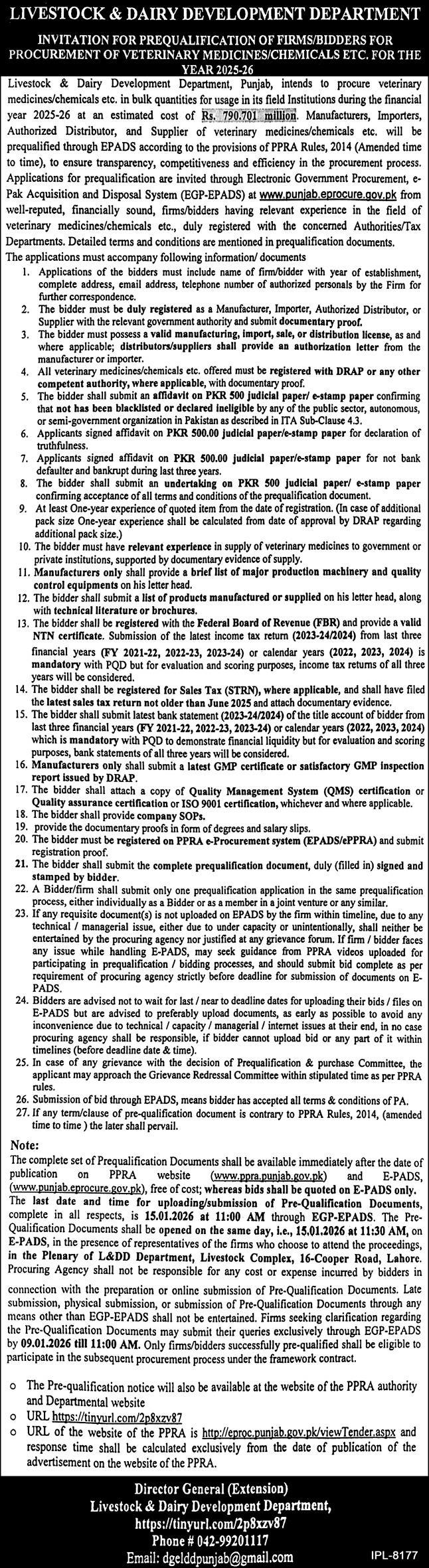 Veterinary, Pre Qualification, Pharma, Medical & Scientific, General Order Supply, Chemicals