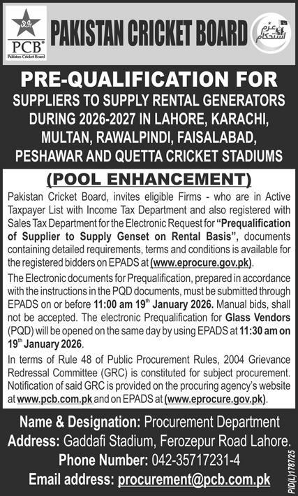 Pre Qualification, Mechanical, Machinery, Generators, General Order Supply, Energy, Electronics, Electrical