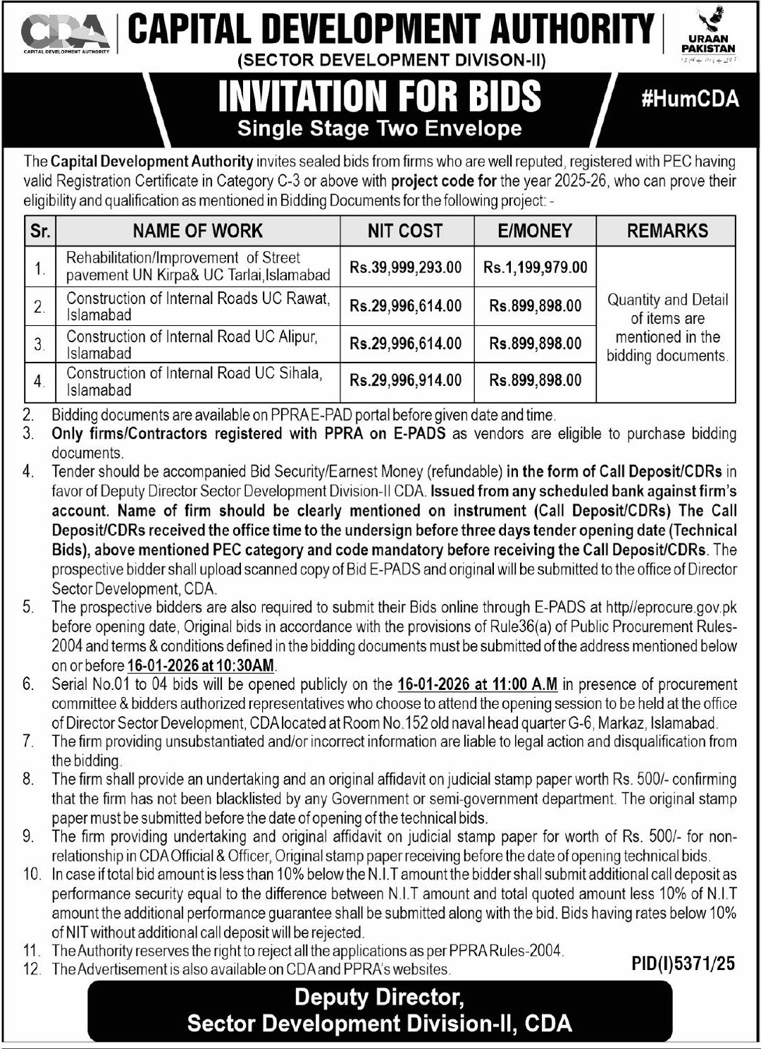 Water Supply Scheme / Drains / Sewerage, Roads, Repair & Maintenance, Engineering, Development Authority, Construction, Buildings