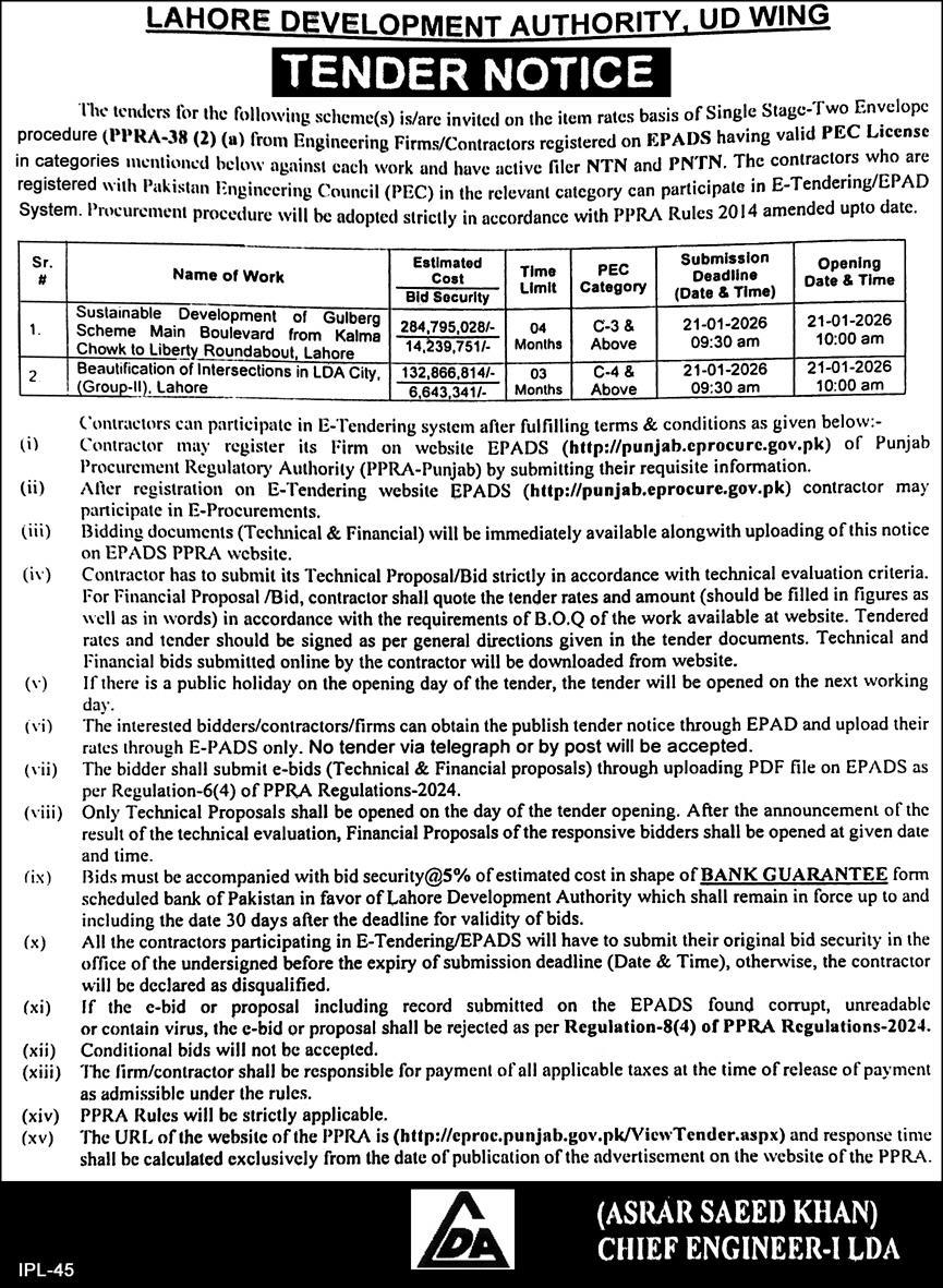 Water Supply Scheme / Drains / Sewerage, Roads, Repair & Maintenance, LDA, Engineering, Development Authority, Construction, Buildings
