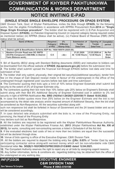 Water Supply Scheme / Drains / Sewerage, Roads, Repair & Maintenance, Engineering, Construction, Communication & Works, Buildings