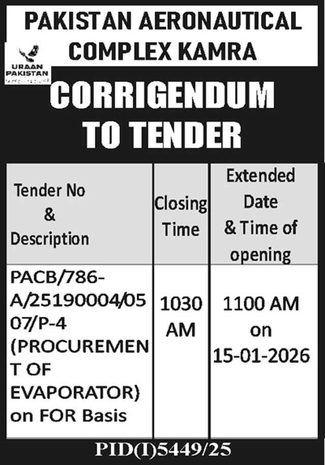 Mechanical, Machinery, General Order Supply, Electronics, Electrical, Corrigendum/Addendum