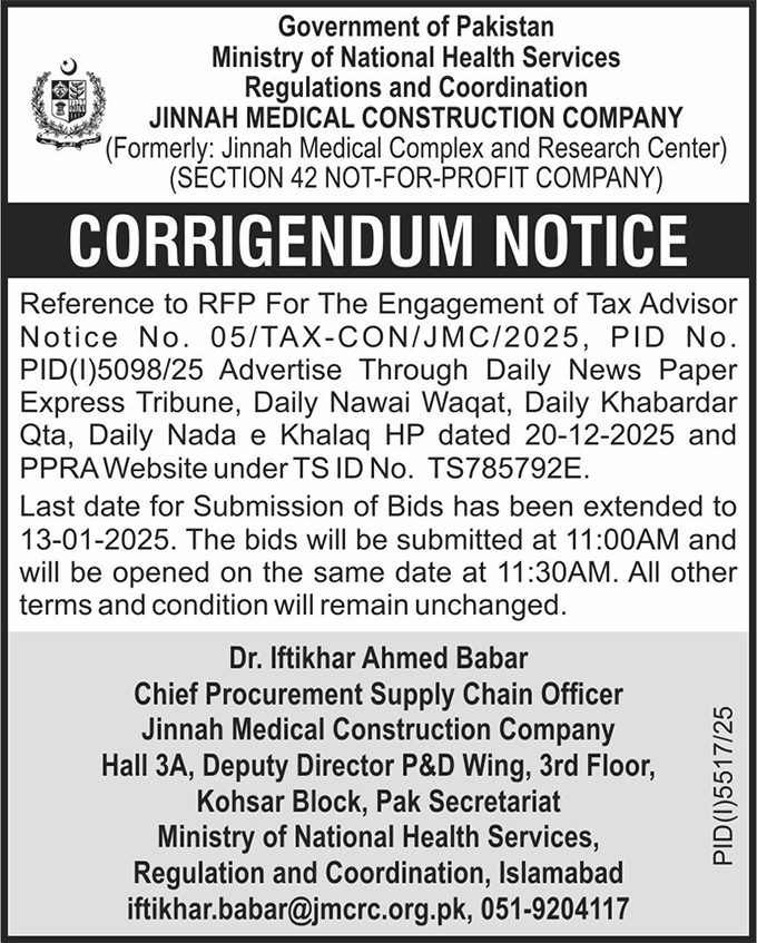 Services Required, Corrigendum/Addendum , Consultancy