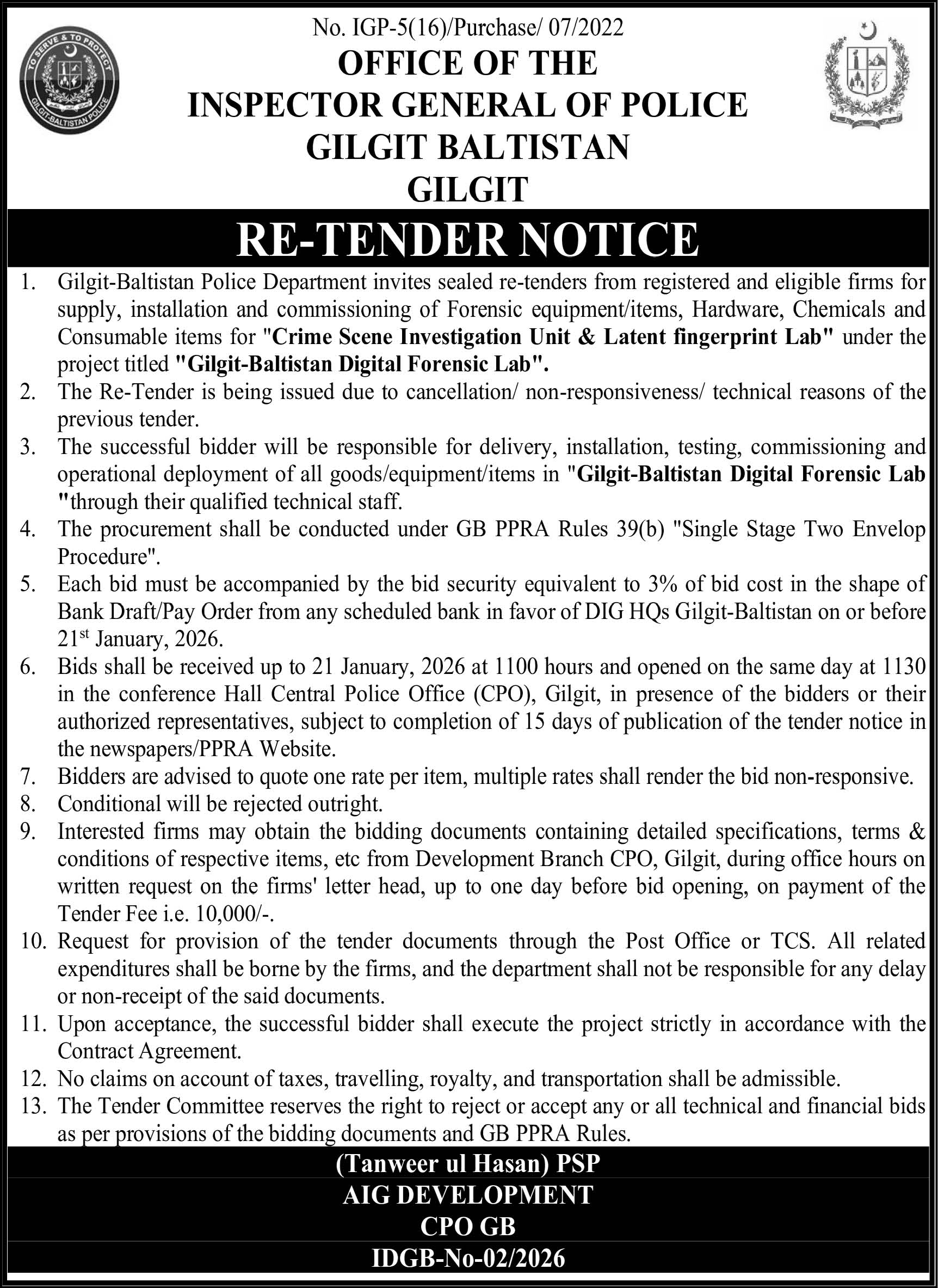 Tender Description