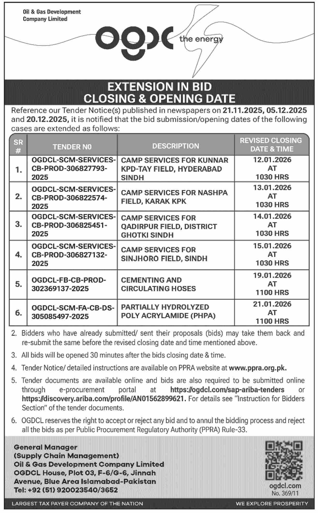 Textile/Uniform/Shoes, Repair & Maintenance, OGDCL, OGDCL, Engineering, Construction