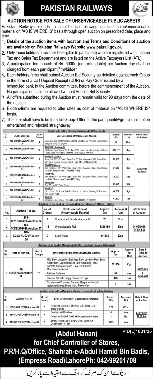 Toll Tax, Scrap Material, Railway, Baldia, Auction