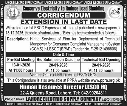 WAPDA, Services Required, Labor Required, Corrigendum/Addendum