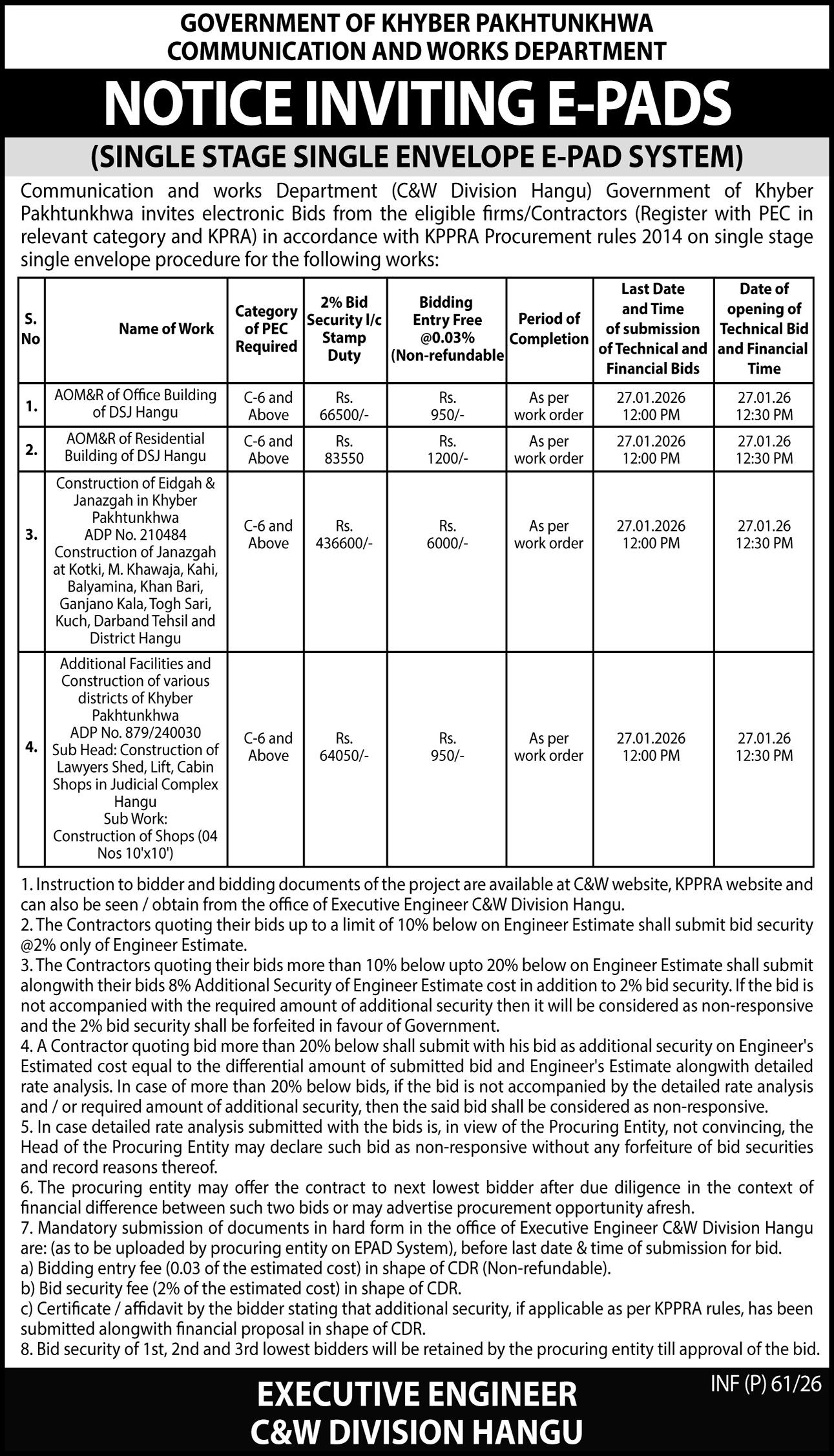 Water Supply Scheme / Drains / Sewerage, Roads, Repair & Maintenance, Engineering, Construction, Communication & Works, Buildings, Addition & Alteration