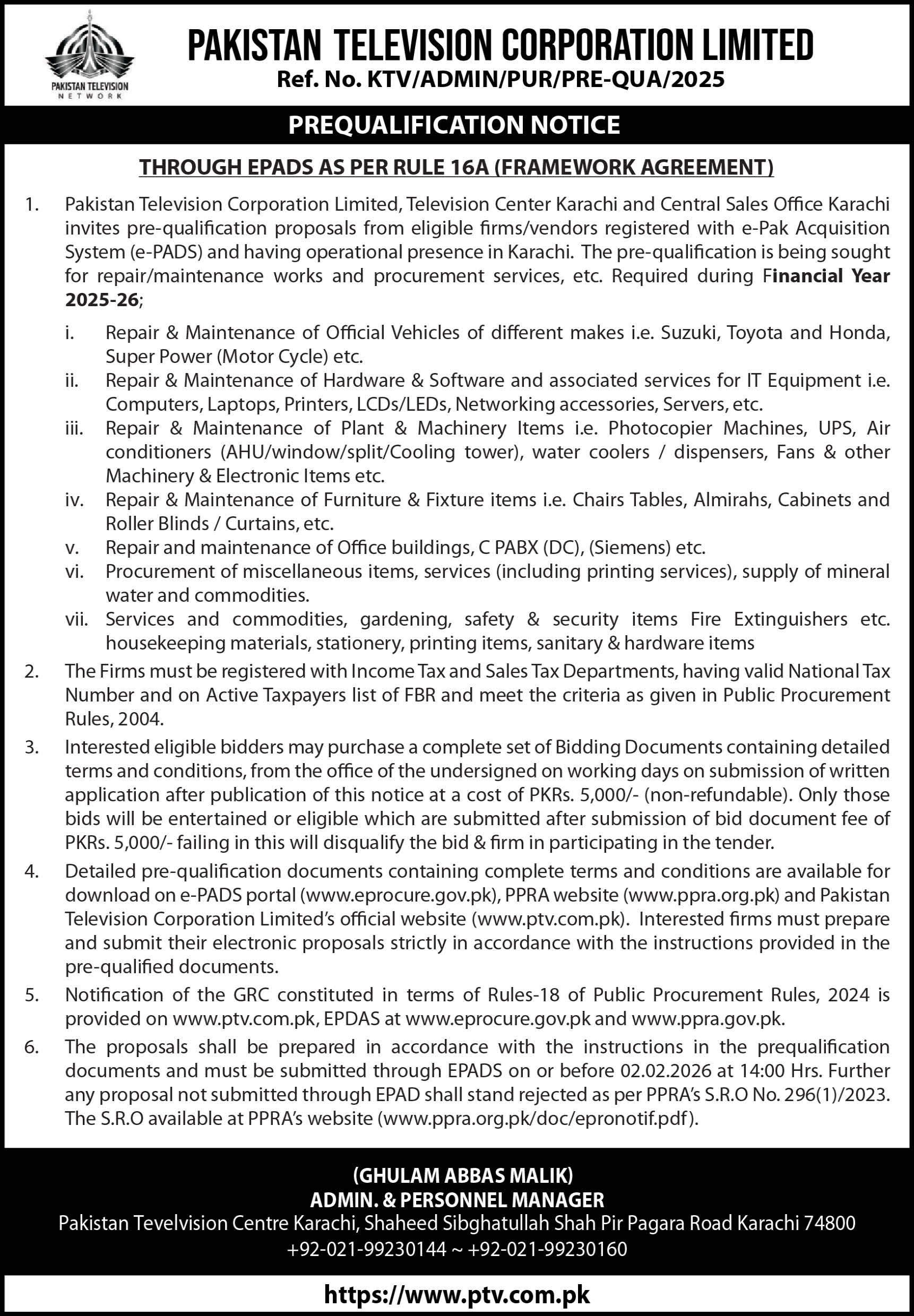 Pakistan Television corporation Limited. |