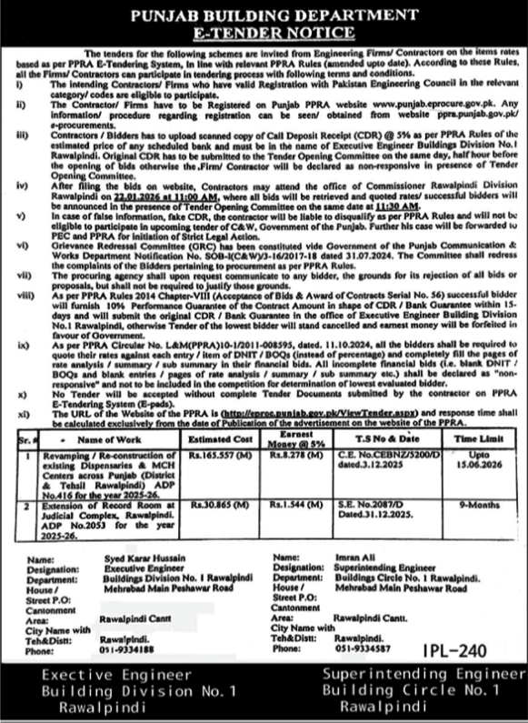Water Supply Scheme / Drains / Sewerage, Roads, Repair & Maintenance, Engineering, Construction, Buildings