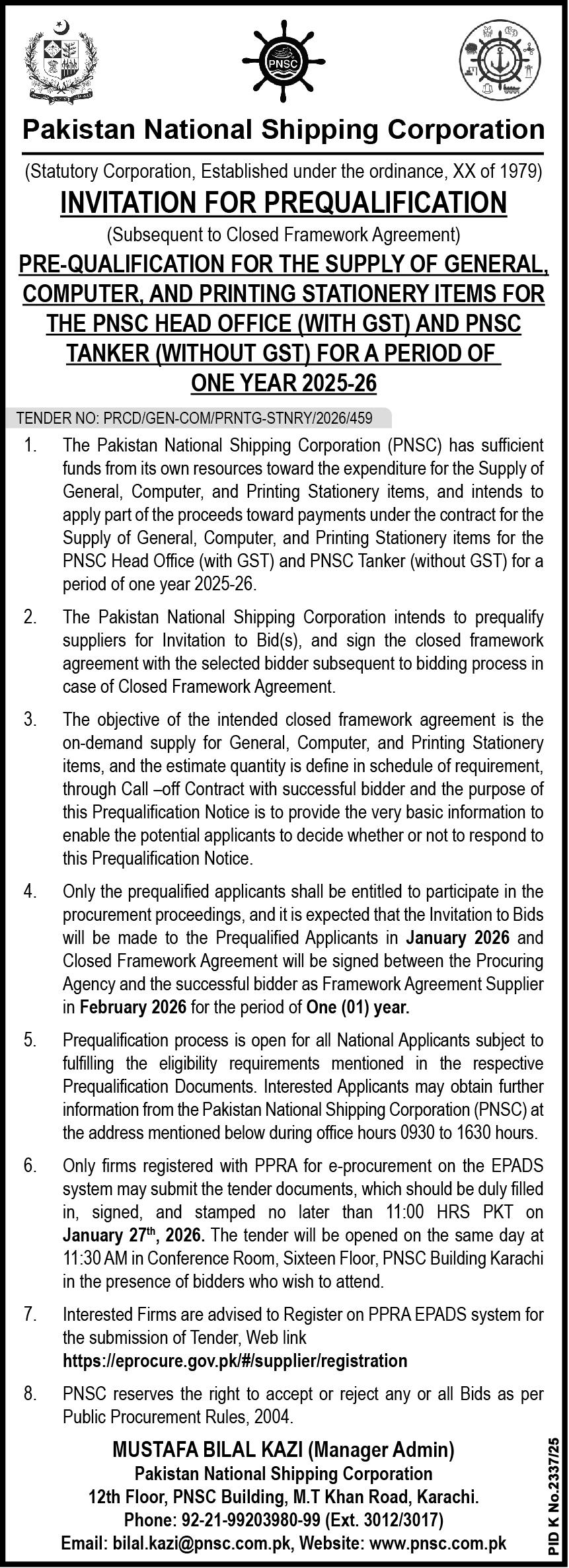 Stationery, Software, Pre Qualification, Networking, Mechanical, Machinery, IT, General Order Supply, Electronics, Electrical, Computers/Accessories, Cables