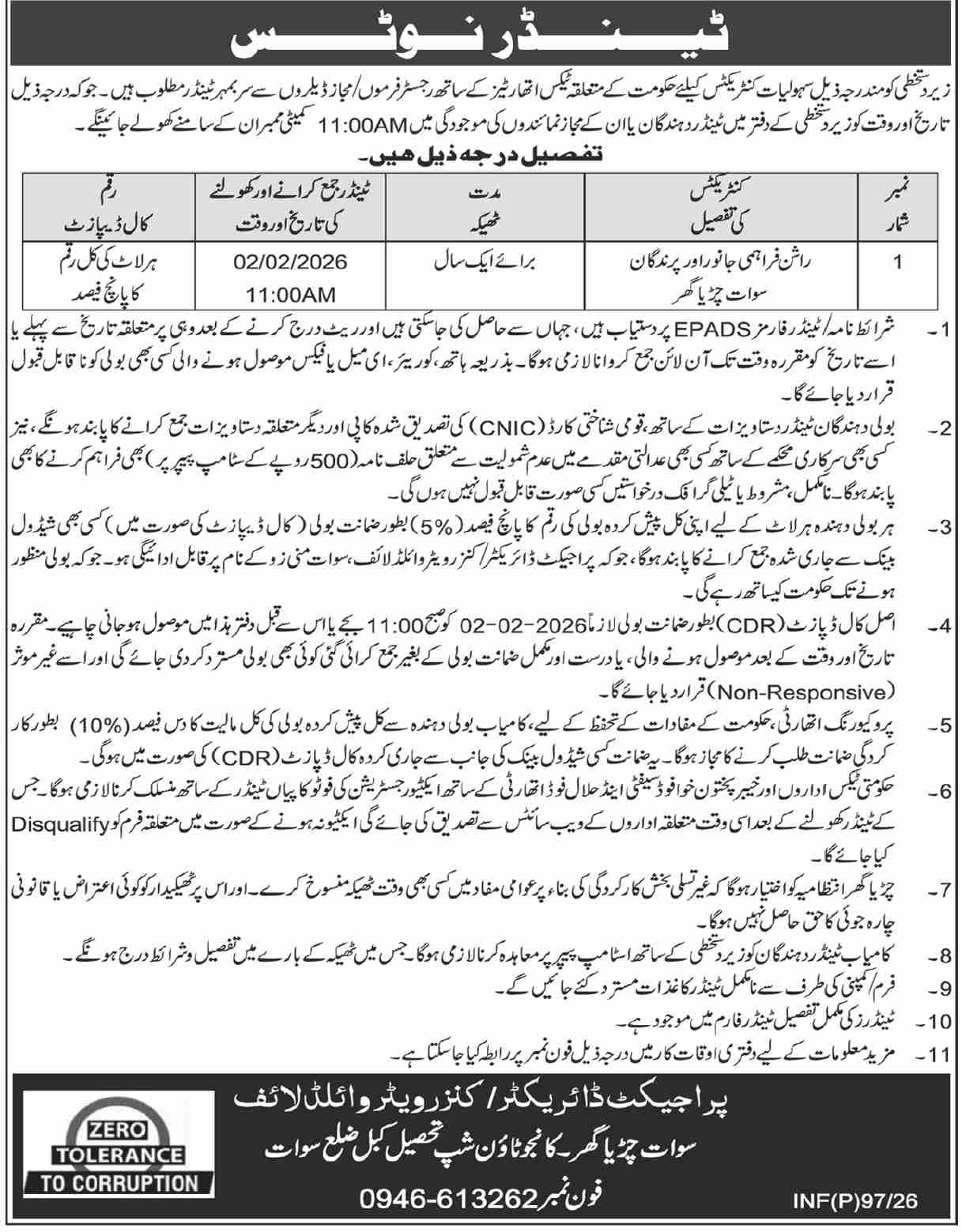 Tender Description