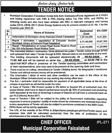 Water Supply Scheme / Drains / Sewerage, Roads, Repair & Maintenance, Engineering, Construction, Buildings