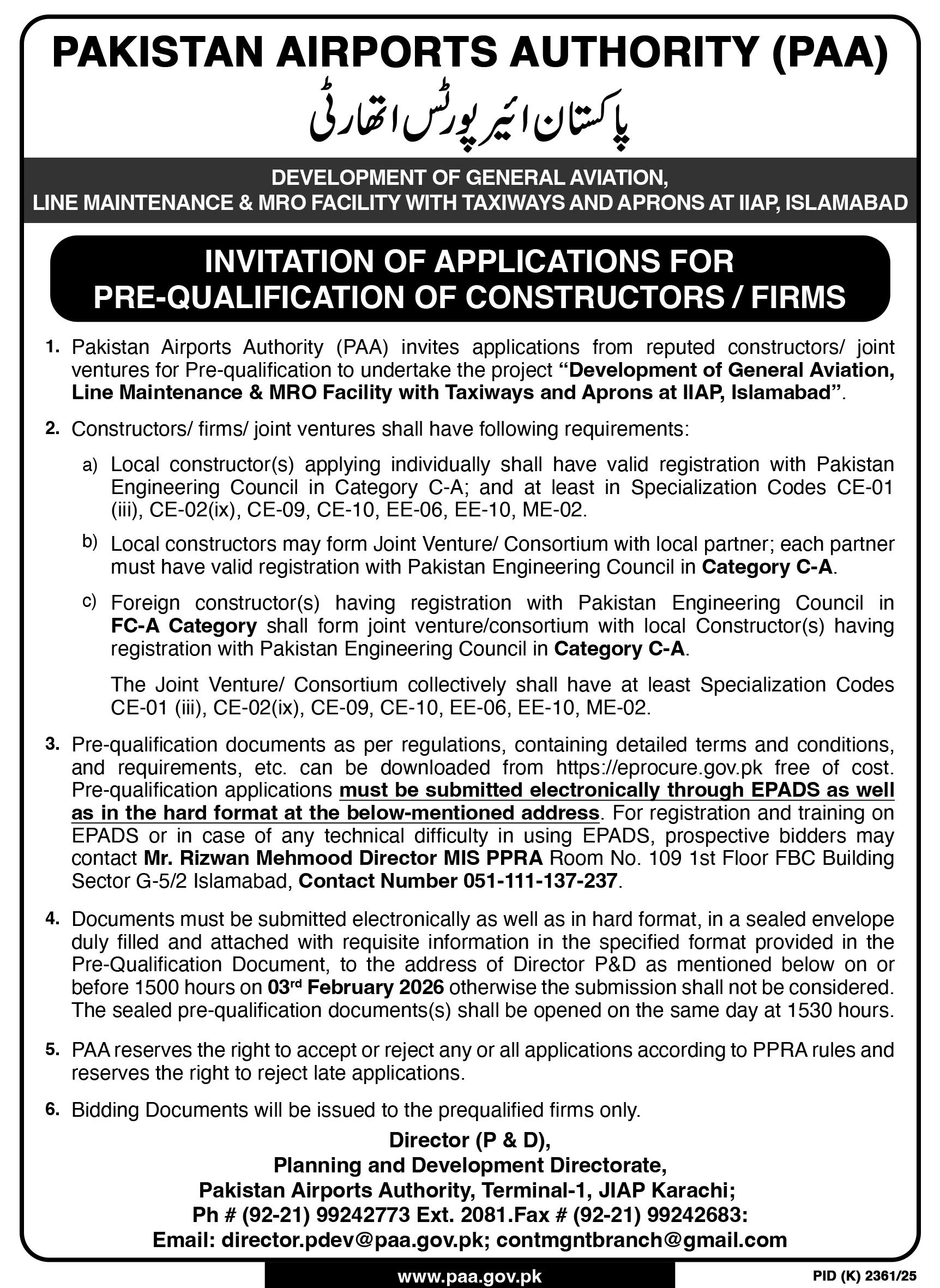 Roads, Repair & Maintenance, Pre Qualification, Engineering, Construction, Buildings
