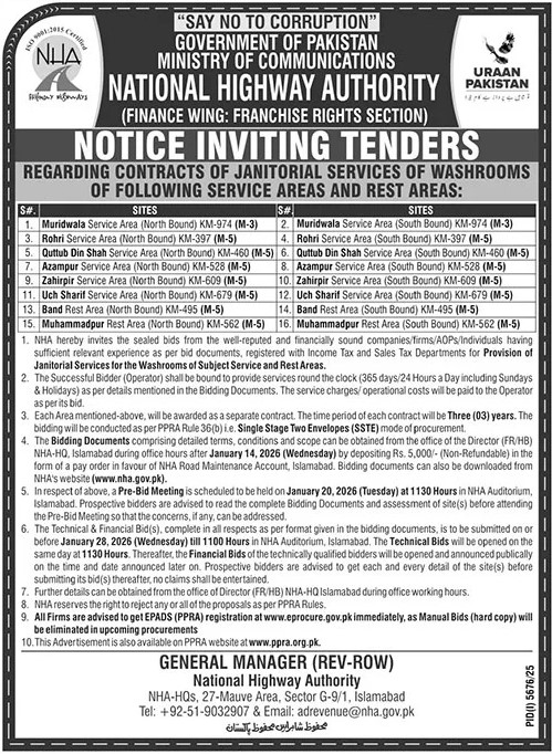 Services Required, NHA, Janitorial, Highways
