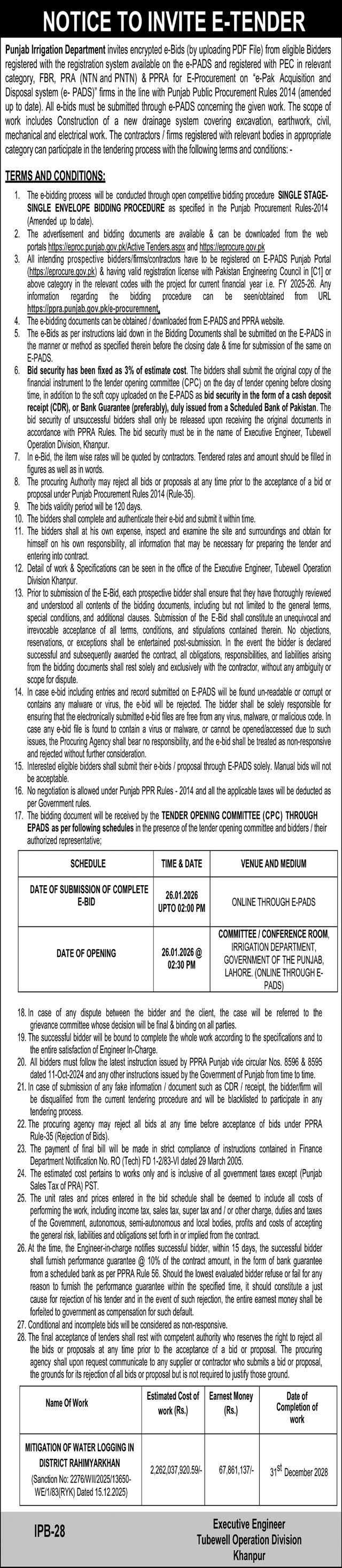 Water Supply Scheme / Drains / Sewerage, Tubewells, Roads, Repair & Maintenance, Engineering, Construction, Buildings