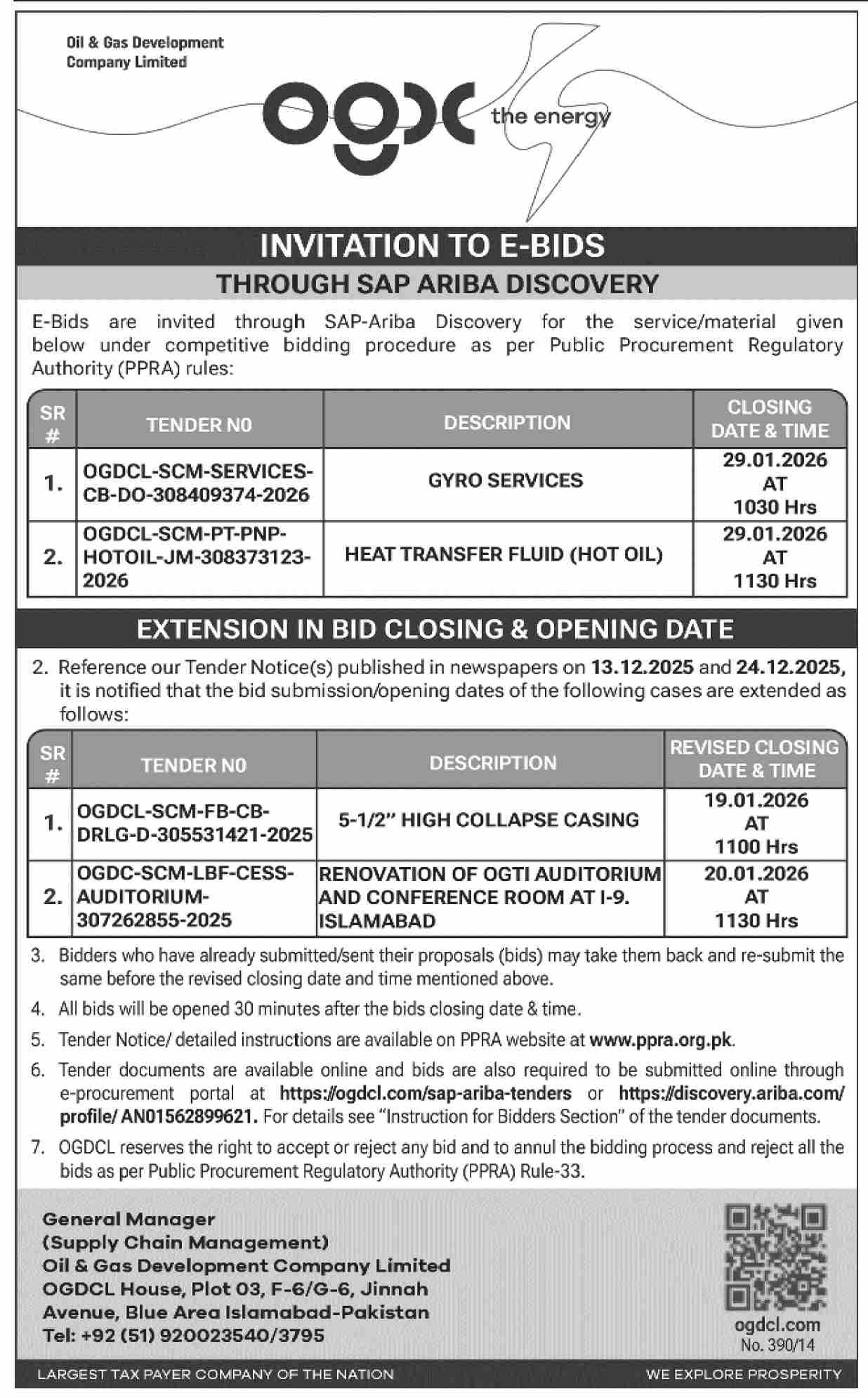 Roads, Repair & Maintenance, Oil & Lubricant, OGDCL, OGDCL, Mechanical, Machinery, General Order Supply, Engineering, Electronics, Electrical, Construction, Buildings