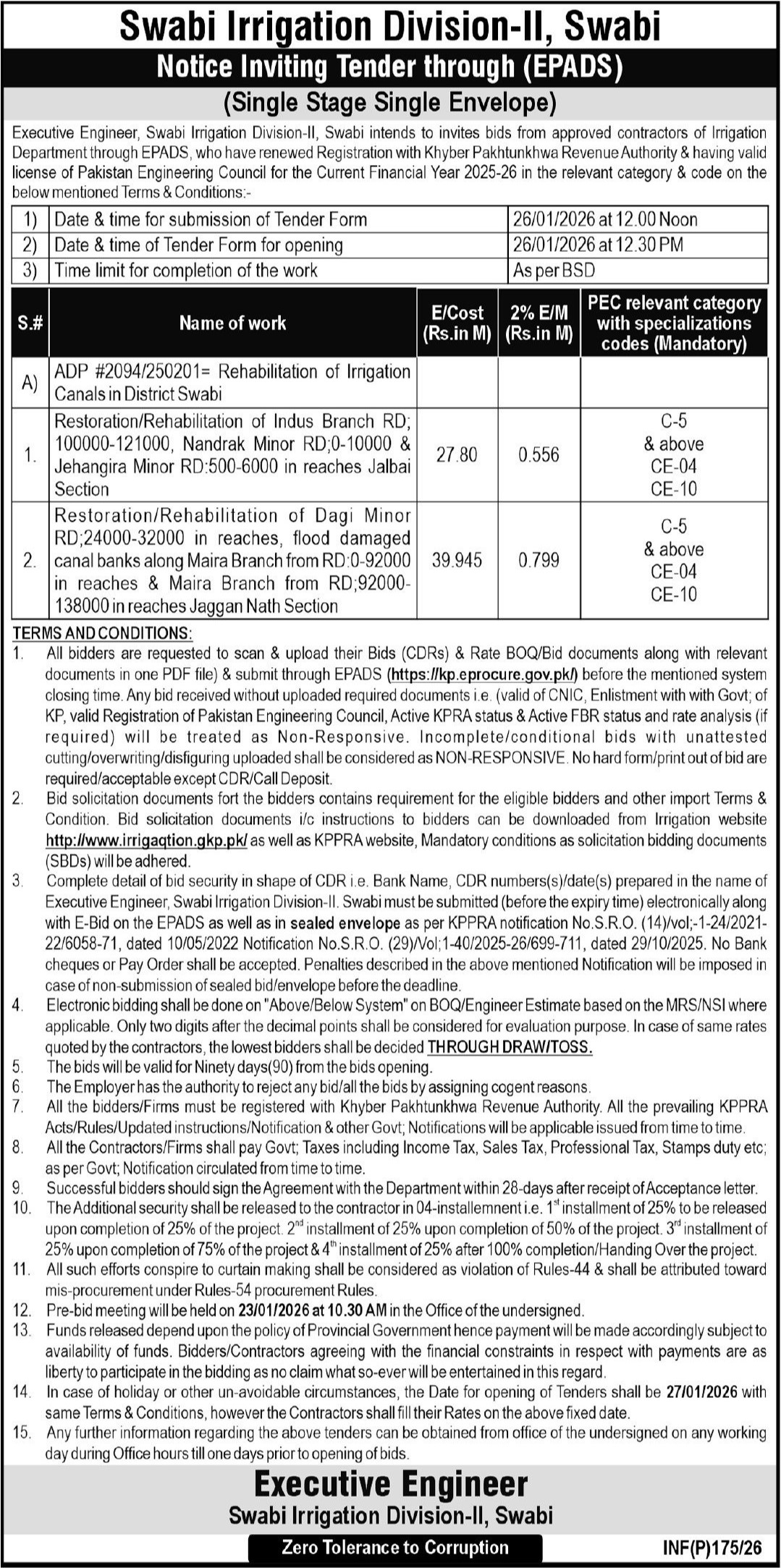 Water Supply Scheme / Drains / Sewerage, Roads, Repair & Maintenance, Irrigation, Engineering, Construction, Buildings