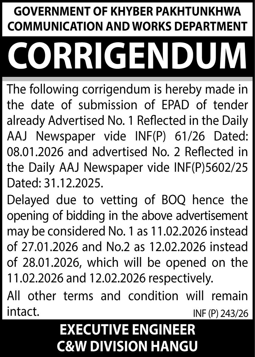 Water Supply Scheme / Drains / Sewerage, Roads, Repair & Maintenance, Engineering, Corrigendum/Addendum , Construction, Buildings
