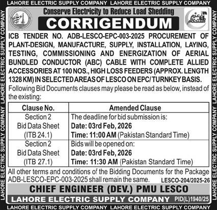 WAPDA, Mechanical, Machinery, General Order Supply, Energy, Electronics, Electrical, Corrigendum/Addendum , Cables