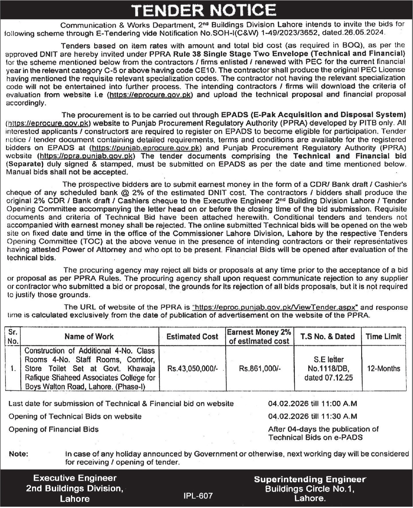 Addition & Alteration, Buildings, Construction, Engineering, Repair & Maintenance, Roads, Water Supply Scheme / Drains / Sewerage