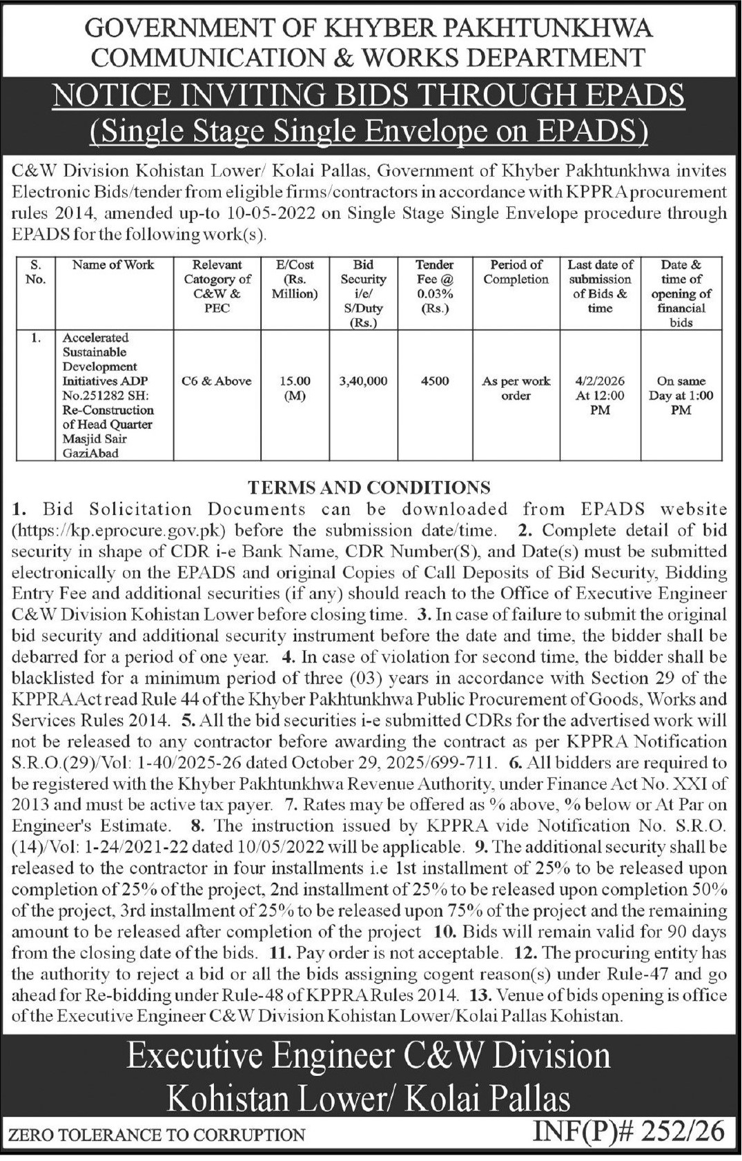 Buildings, Communication & Works, Construction, Engineering, Repair & Maintenance, Roads, Water Supply Scheme / Drains / Sewerage