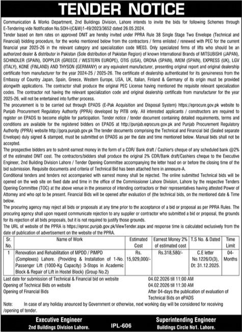 Buildings, Construction, Engineering, Repair & Maintenance, Roads, Water Supply Scheme / Drains / Sewerage