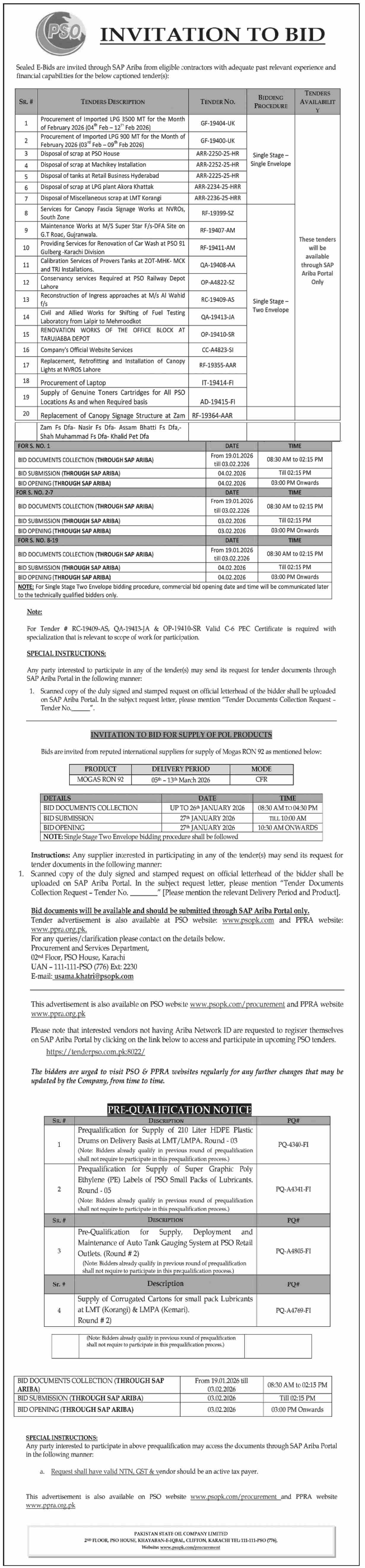 Auction, Baldia, Chemicals, Computers/Accessories, Food / Soap etc., General Order Supply, IT, Networking, Software, Toll Tax