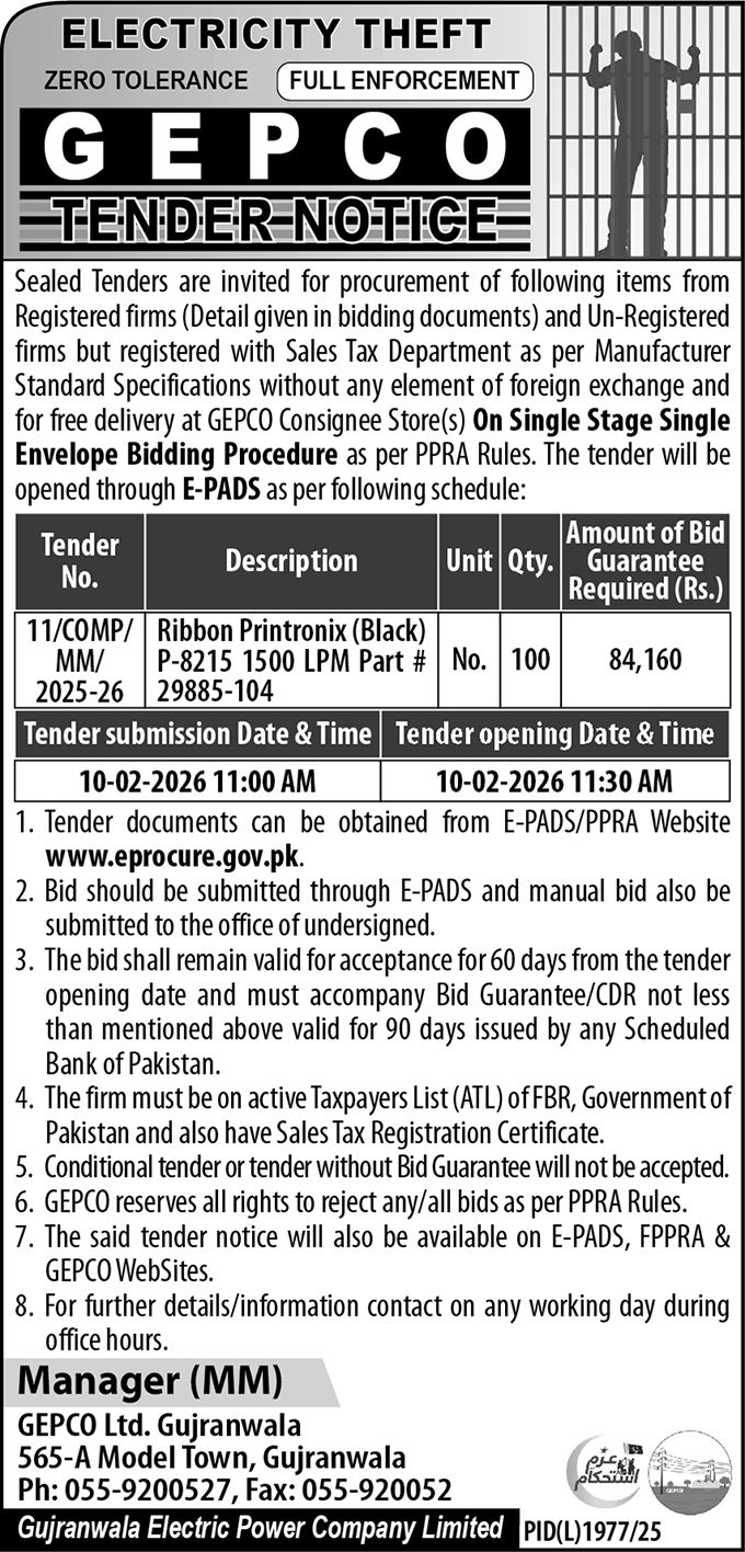 Computers/Accessories, General Order Supply, IT, Machinery, Mechanical, Stationery, WAPDA