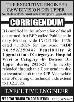 Buildings, Construction, Corrigendum/Addendum , Engineering, Repair & Maintenance, Roads, Water Supply Scheme / Drains / Sewerage