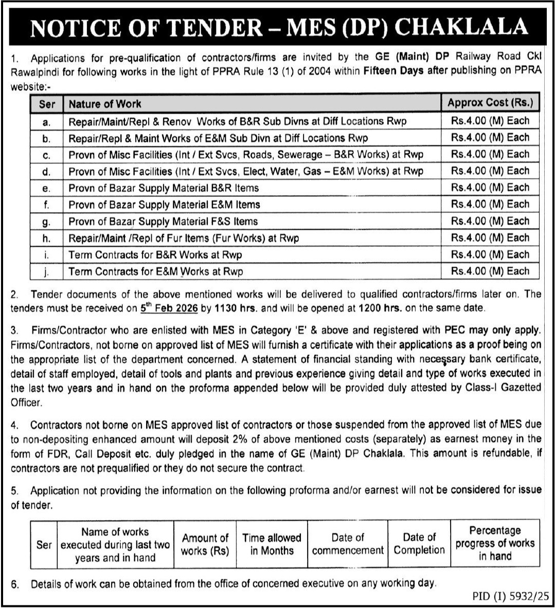 Tender Description