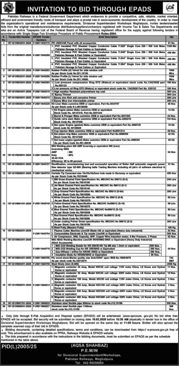 Cables, Electrical, Electronics, General Order Supply, Machinery, Mechanical, Railway, Steel