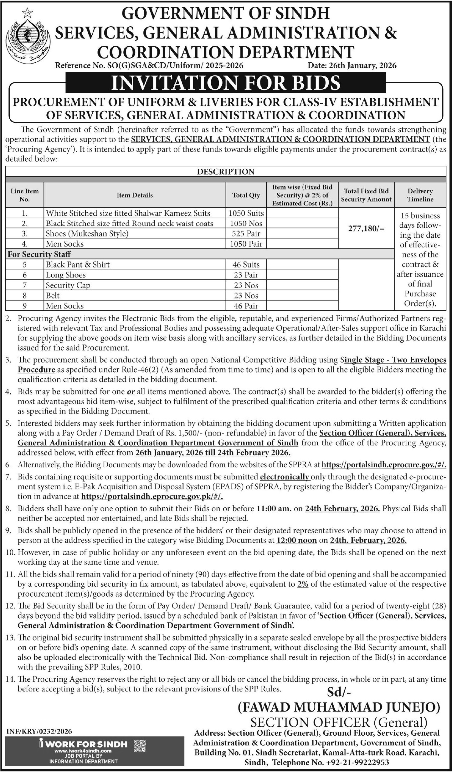 Tender Description