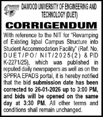 Buildings, Construction, Corrigendum/Addendum , Engineering, Repair & Maintenance, Roads, Water Supply Scheme / Drains / Sewerage