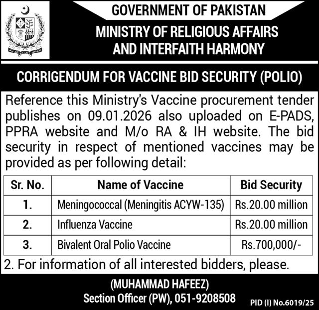Ministry of Religious Affair and Inter Faith Harmony Directorate of Hajj Peshawar
