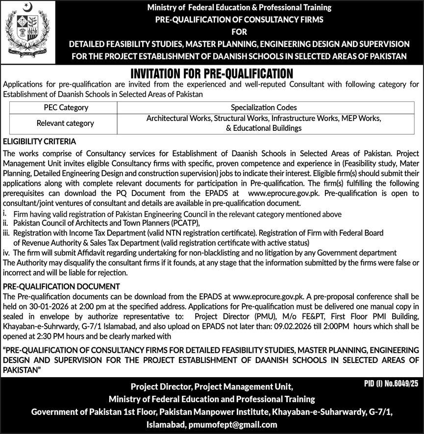 Construction, Consultancy, Engineering, Pre Qualification, Repair & Maintenance, Services Required