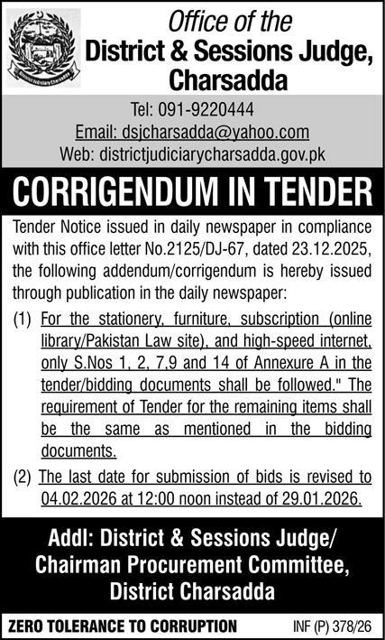 Buildings, Construction, Corrigendum/Addendum , Electrical, Electronics, Engineering, General Order Supply, Machinery, Mechanical, Repair & Maintenance, Roads