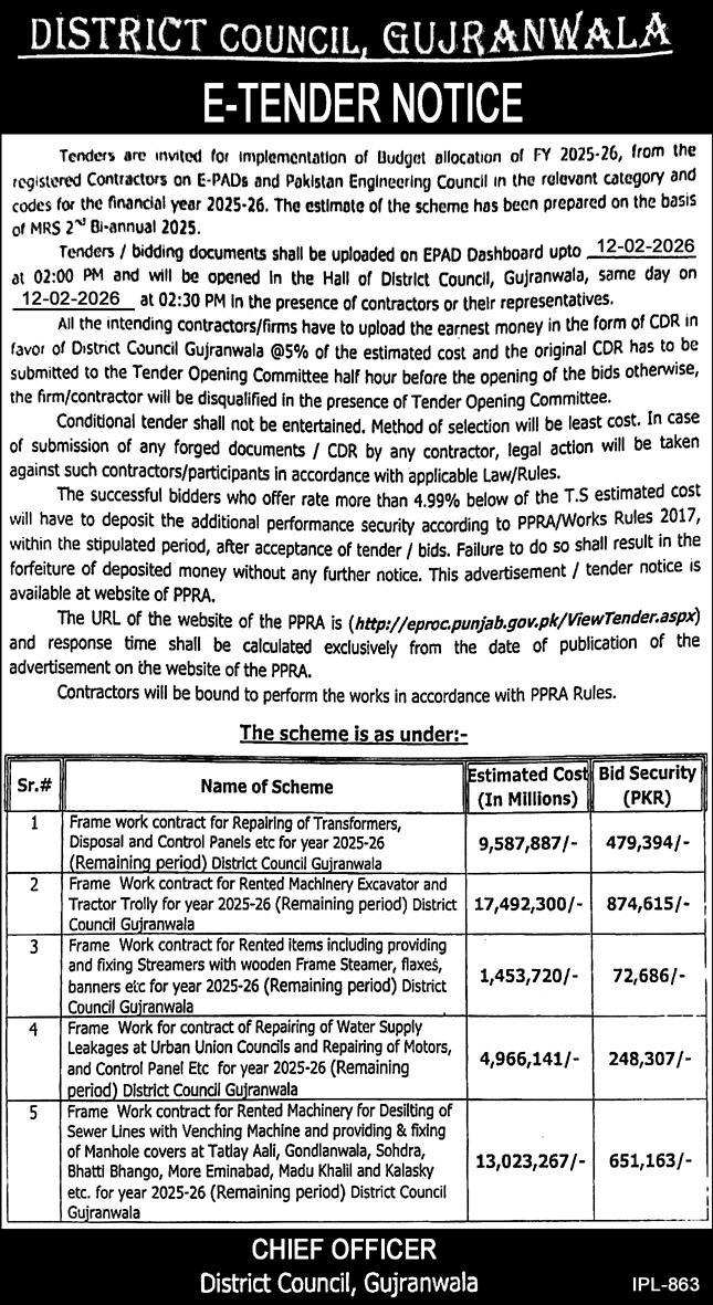 Advertising, Construction, Electrical, Electronics, Engineering, General Order Supply, Machinery, Mechanical, Repair & Maintenance, Roads, Tractor, Water Supply Scheme / Drains / Sewerage