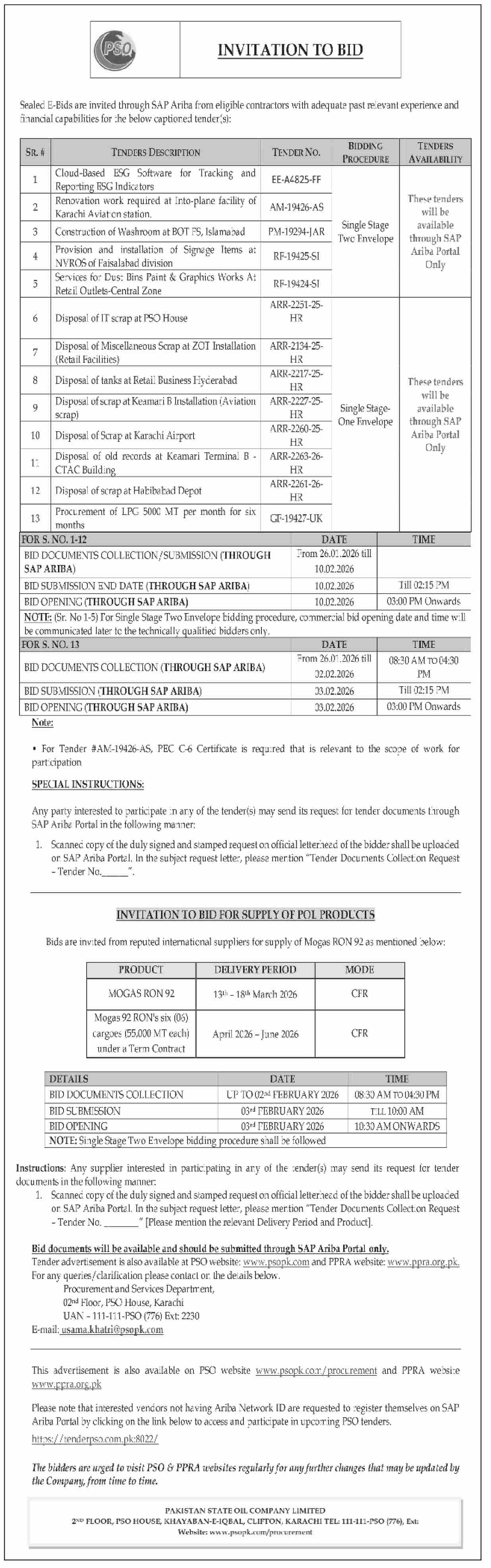Advertising, Auction, Baldia, Buildings, Cables, Chemicals, Computers/Accessories, Construction, Electrical, Electronics, Engineering, General Order Supply, IT, Machinery, Mechanical, Networking, Repair & Maintenance, Roads, Scrap Material, Software, Toll Tax