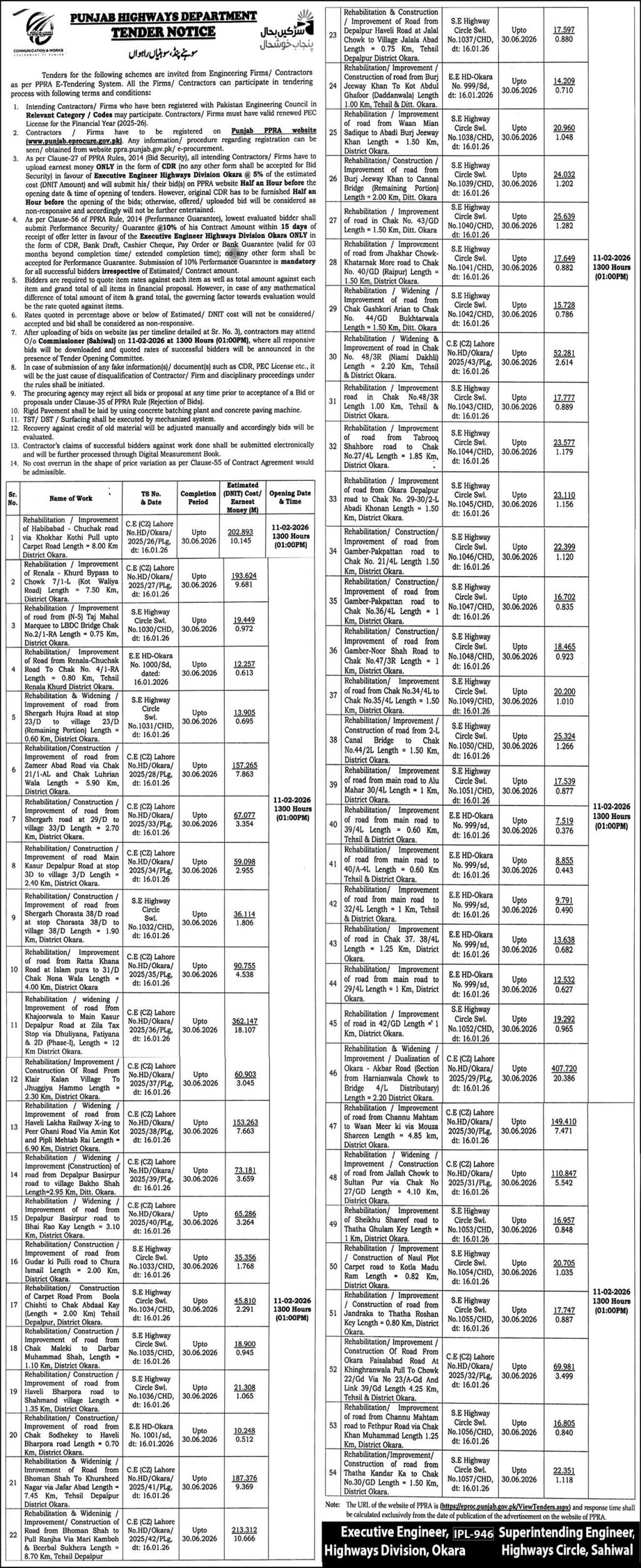 Buildings, Construction, Engineering, Highways, Repair & Maintenance, Roads, Water Supply Scheme / Drains / Sewerage
