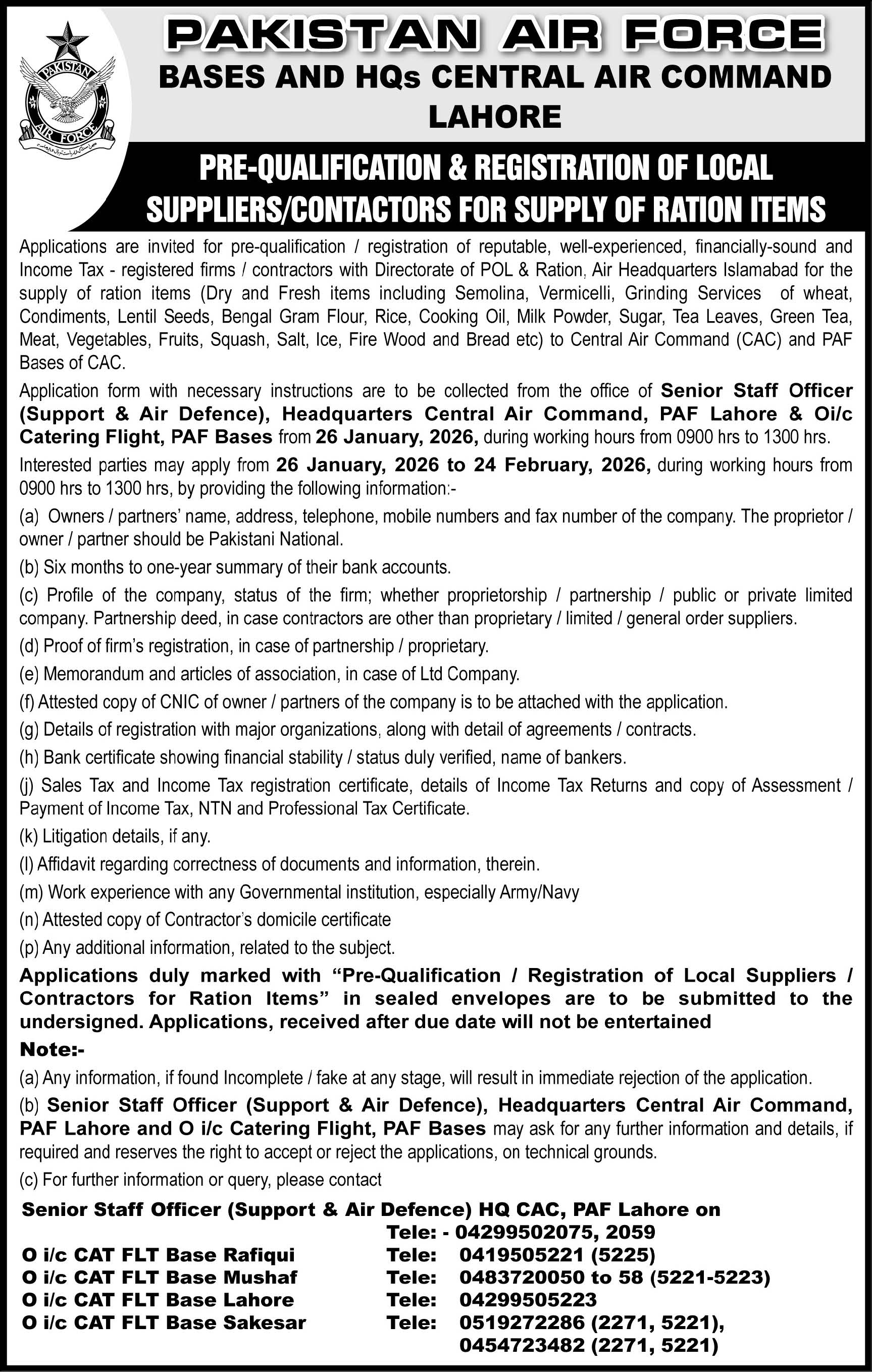 Food / Soap etc., General Order Supply, Pre Qualification