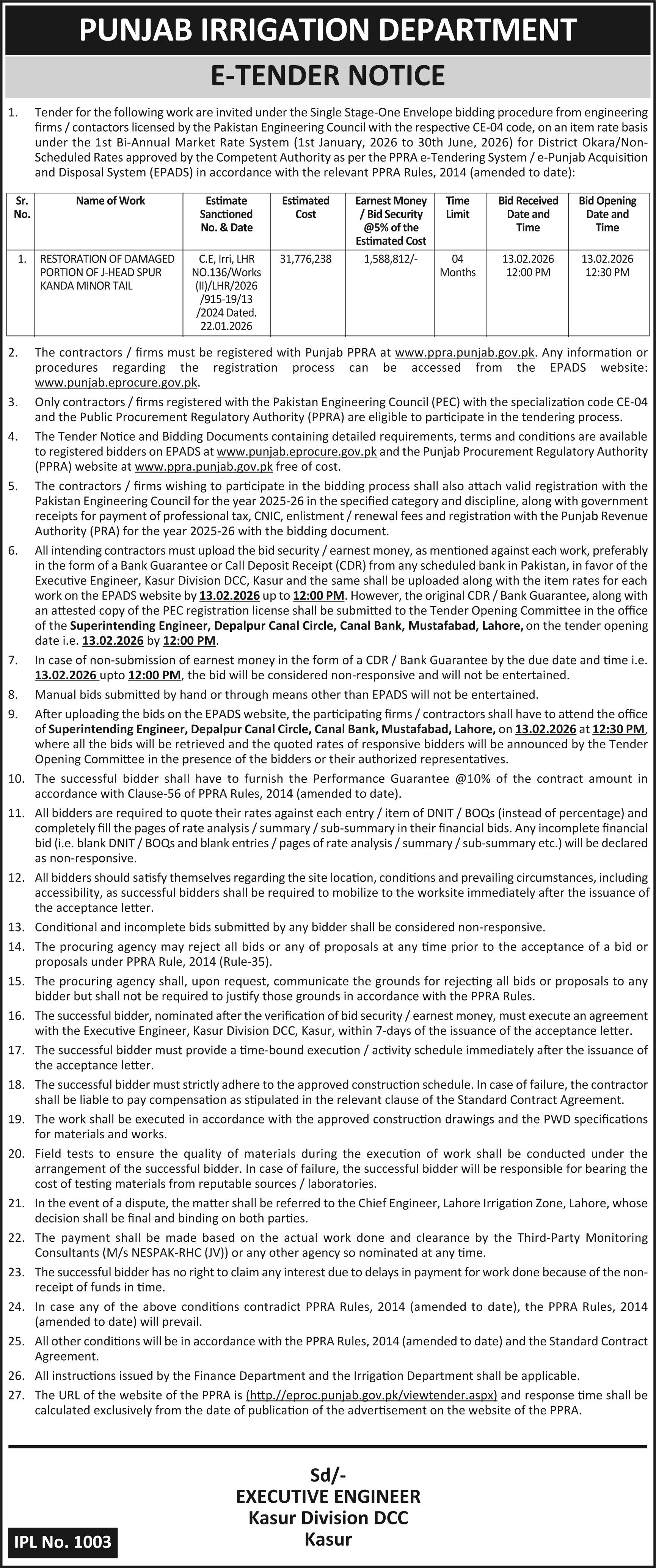 Buildings, Construction, Engineering, Irrigation, Repair & Maintenance, Roads, Water Supply Scheme / Drains / Sewerage