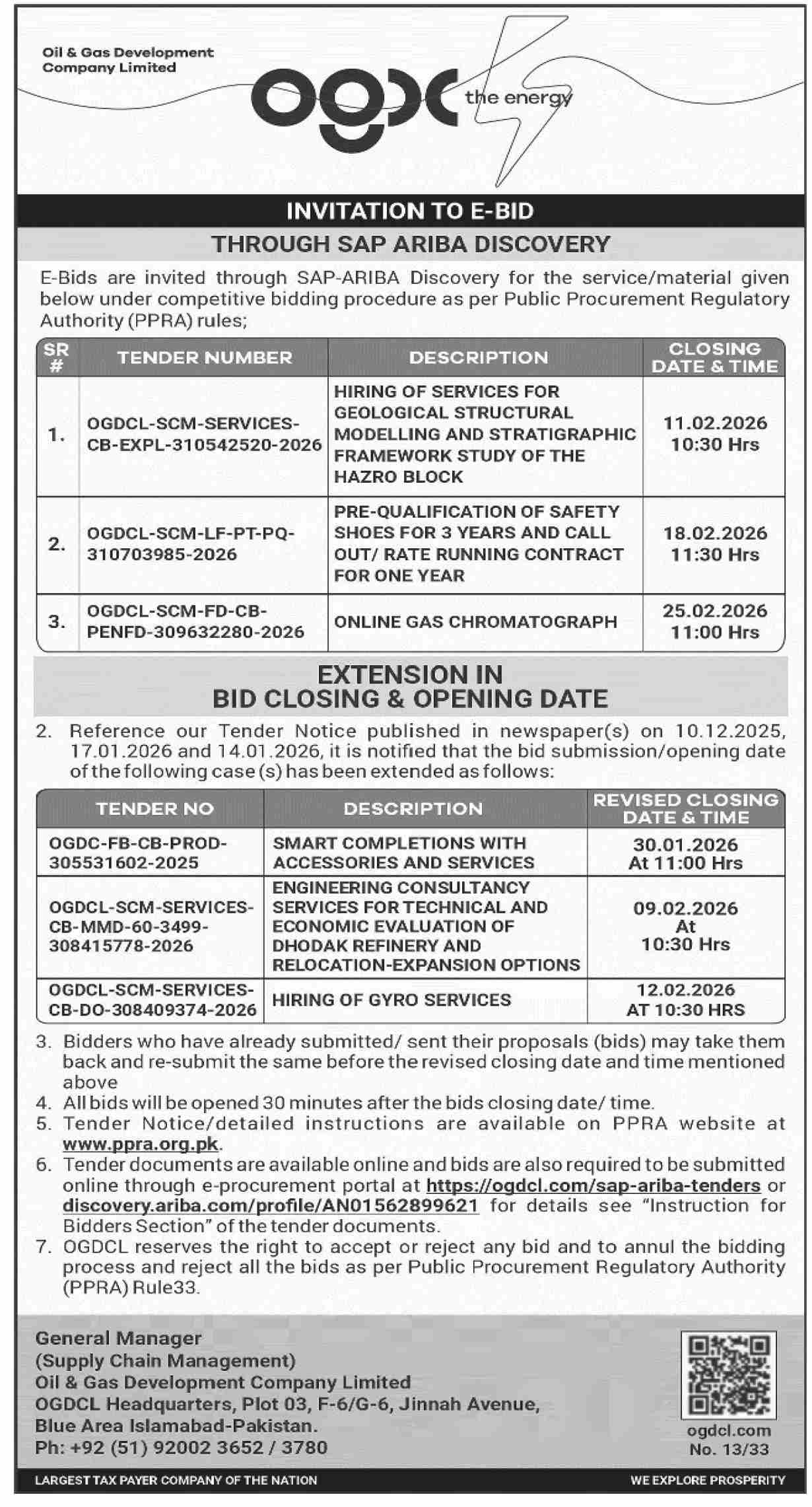 Chemicals, Consultancy, General Order Supply, Machinery, Mechanical, OGDCL, OGDCL, Pre Qualification, Services Required, Textile/Uniform/Shoes