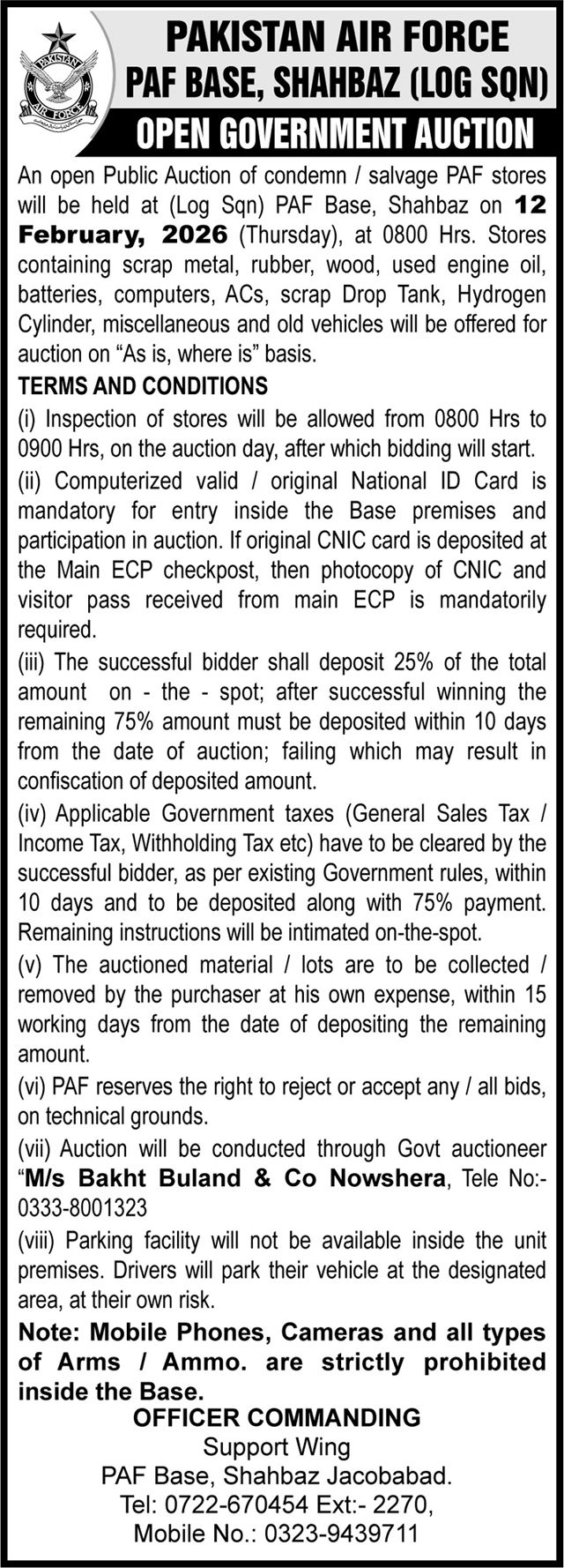 Auction, Baldia, Scrap Material, Toll Tax