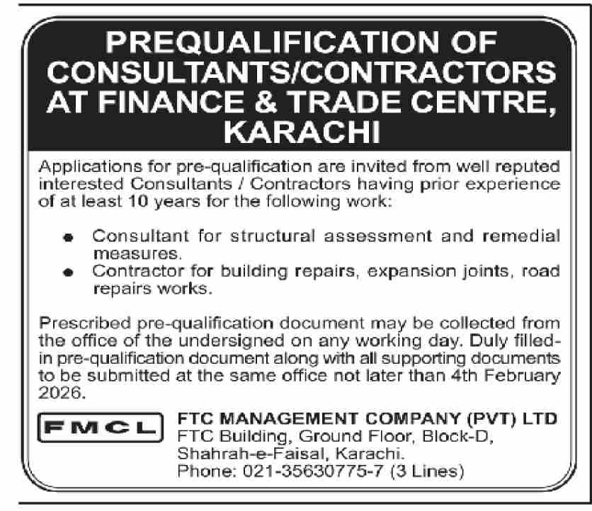 Buildings, Construction, Consultancy, Engineering, Pre Qualification, Repair & Maintenance, Roads, Services Required