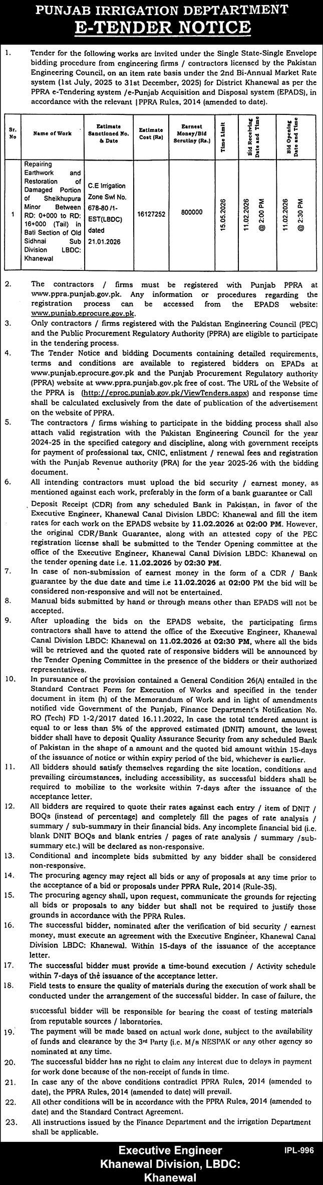 Buildings, Construction, Engineering, Repair & Maintenance, Roads, Water Supply Scheme / Drains / Sewerage